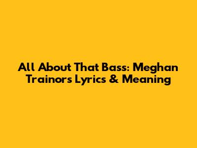 "All About That Bass" by Meghan Trainor took the world by storm, becoming an anthem of body positivity and self-acceptance. This infectious tune, released in 2014, not only topped charts globally but also sparked conversations about beauty standards and the importance of loving your body just the way it is. In this article, we’ll dive deep into the lyrics, explore the meaning behind the song, and understand why it resonated with so many people.