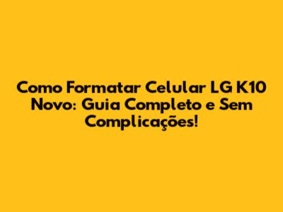 Dicas e Soluções para Problemas Comuns na Formatação do LG K10