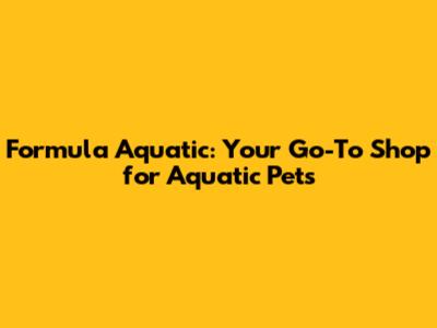 Formula Aquatic: Your Go-To Shop For Aquatic Pets