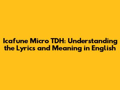 Icafune Micro TDH: English Lyrics & Meaning
