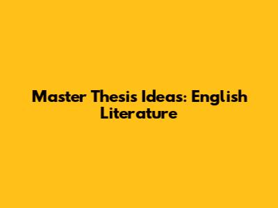 Master Thesis Ideas: English Literature